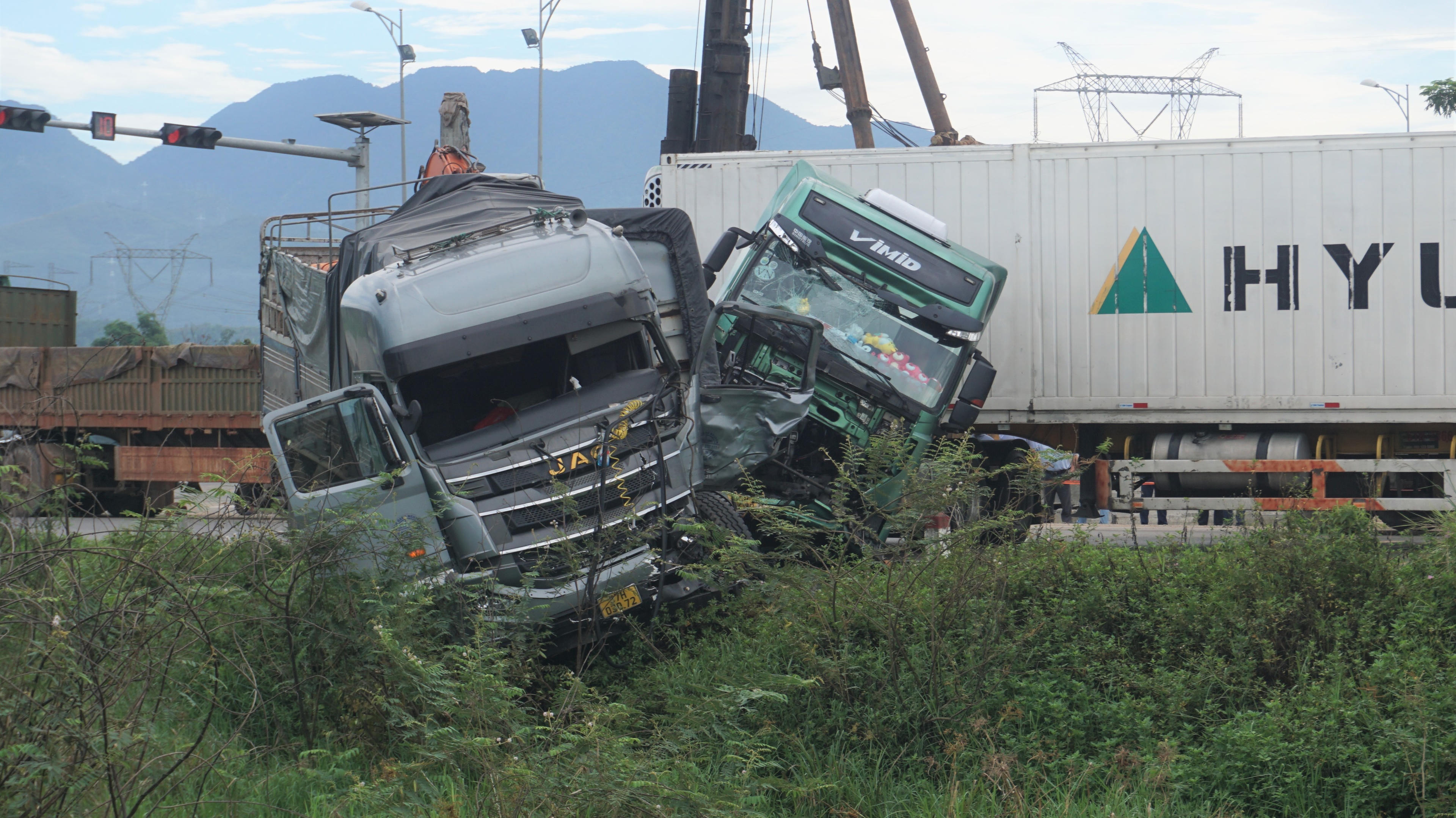 Vụ tai nạn làm 1 người ngồi trên xe tải bị thương, cả hai phương tiện hư hỏng phần đầu. Tuyến đường tránh Nam Hải Vân - Túy Loan ách tắc một chiều khoảng 30 phút.
