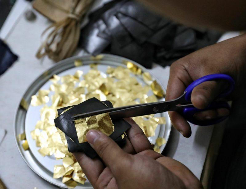 Các công đoạn xếp vàng chuẩn bị cho khâu đập điệp và làm quỳ cũ đòi hỏi sự kiên trì và tỉ mỉ cao. |