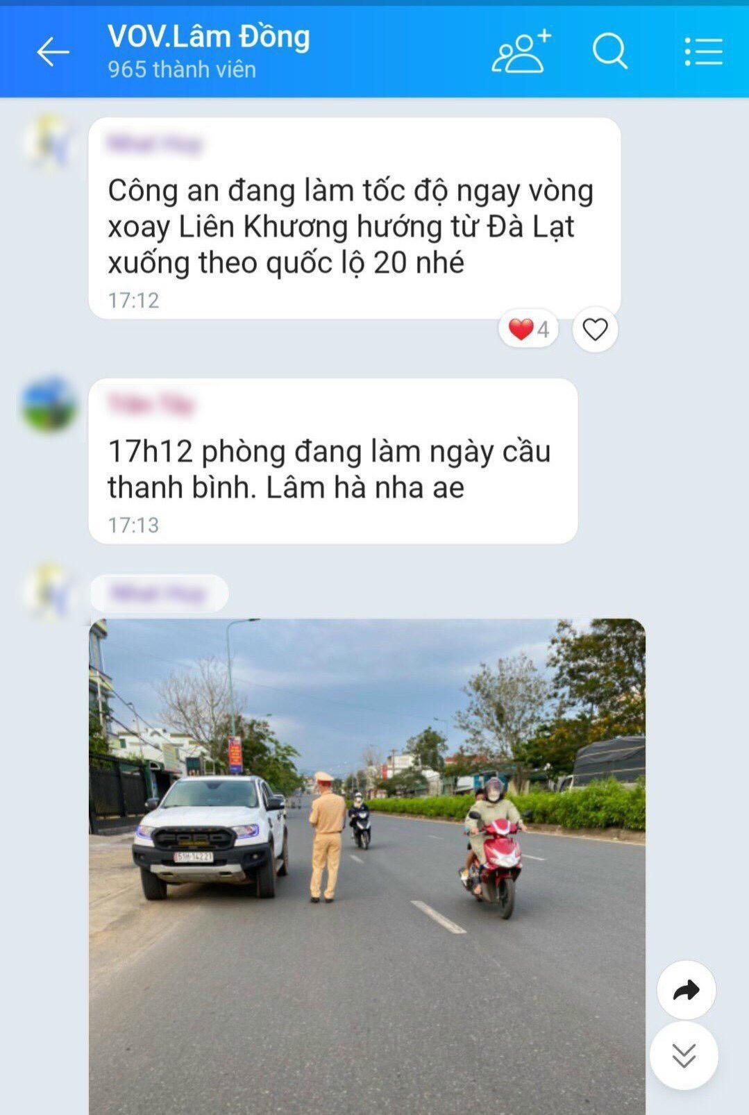 Trước đó, Phòng An ninh mạng và phòng, chống tội phạm sử dụng công nghệ cao - Công an tỉnh Lâm Đồng phát hiện nhiều Fanpage, hội, nhóm kín trên các trang mạng xã hội (Zalo, Facebook, Telegram…) có hành vi thông báo, chia sẻ thông tin liên quan đến vị trí, khu vực tuần tra, kiểm soát tốc độ, đo nồng độ cồn, thực thi nhiệm vụ của lực lượng CSGT tại địa bàn tỉnh Lâm Đồng nói riêng và nhiều địa phương khác nói chung, với số lượng thành viên rất lớn từ 500-10.000 người như: “Hội Lái Xe Lâm Đồng”, “VOV. Lâm Đồng”, “VOV Đà Lạt.”…