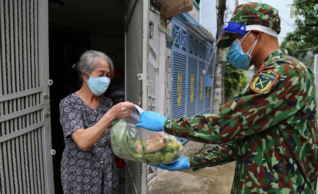 Nhu yếu phẩm được trao tận nhà người dân. |