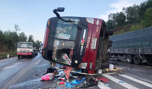 Thông tin ban đầu, vào khoảng 17h hôm nay, 21/7, xe khách mang BKS 22B-005.30 đi theo hướng Bắc – Nam, khi đến km 440+560 Quốc lộ 1A (đoạn qua địa phận xã Nghi Yên, huyện Nghi Lộc, tỉnh Nghệ An) bất ngờ mất lái leo lên giải phân cách rồi lật nghiêng nằm chắn ngang giữa đường.