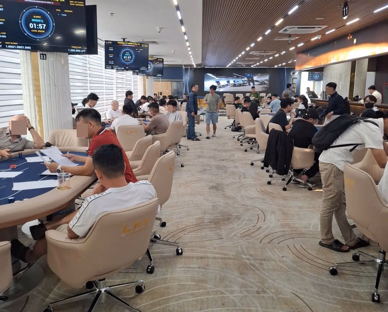 Thời điểm kiểm tra có 86 người tham gia chơi tại 13 bàn, đồng thời đang diễn ra 4 giải đấu Poker dưới danh nghĩa “tập huấn”. Các giải đấu được tổ chức với hình thức bán vé tham gia, phân chia thứ hạng và trao thưởng.
