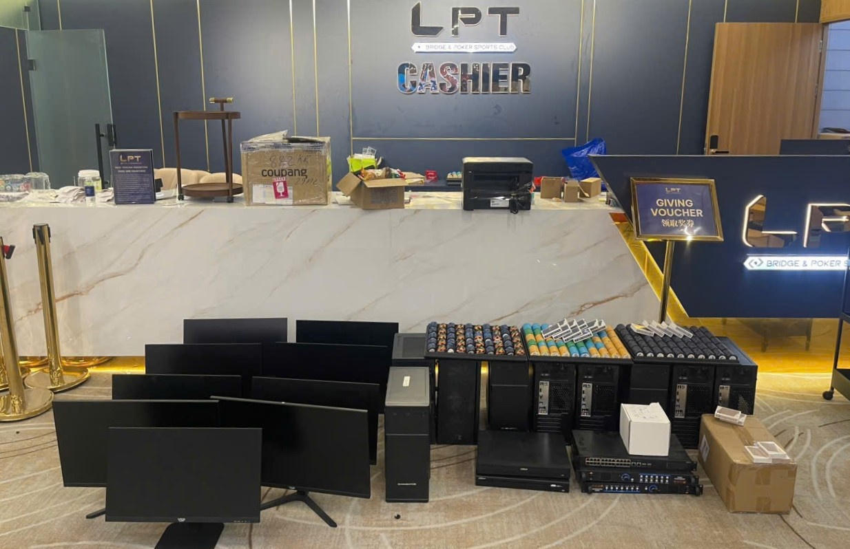 Tang vật, tài liệu thu giữ gồm 21 bàn Poker, hệ thống máy tính, màn hình hiển thị, dữ liệu quản lý người chơi, tiền liên quan đến hoạt động tổ chức giải đấu, hơn 100 điện thoại di động cùng nhiều tài liệu có liên quan.