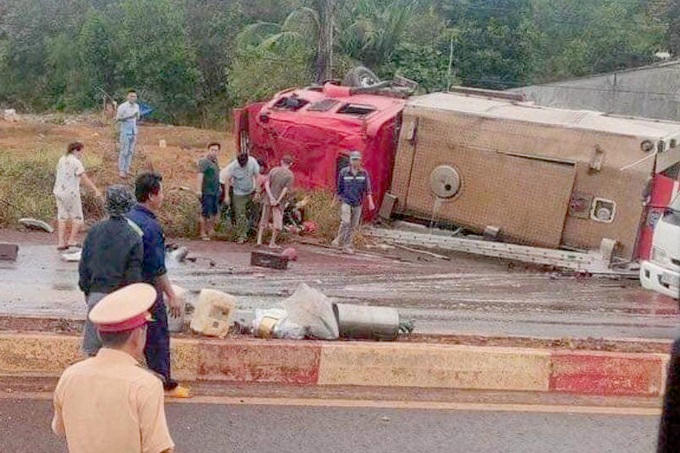 Khi đến đoạn đường thuộc xã Thuận Lợi (huyện Đồng Phú) thì bất ngờ gặp nạn, lật ngang phía lề đường.