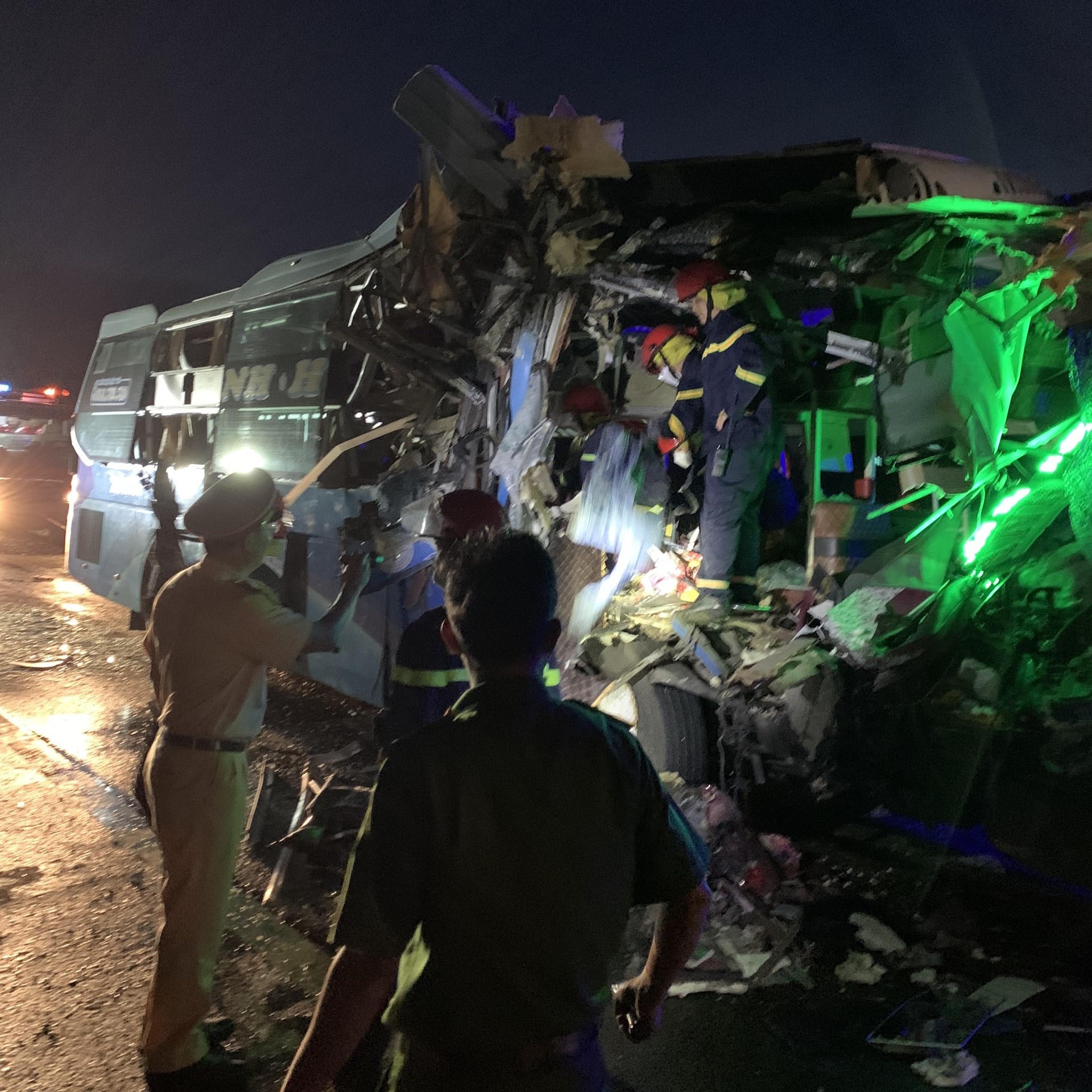 Thời điểm trên, xe khách biển kiểm soát 77B - 016.20 chạy từ hướng Bắc - Nam (chưa rõ người điều khiển) đã không làm chủ tốc độ lao vào đuôi xe contener biển kiểm soát 51D - 105.02 kéo theo sơmi rơ móc biển kiểm soát 51R - 009.81 do tài xế Nguyễn Đức Dũng (sinh năm 1972 ở Hưng Yên) đang chạy phía trước.