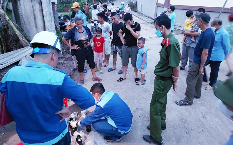 Lãnh đạo Ủy ban nhân dân (UBND) huyện Bình Xuyên cùng các cơ quan quản lý môi trường đã đến hiện trường, yêu cầu các bên liên quan làm việc.