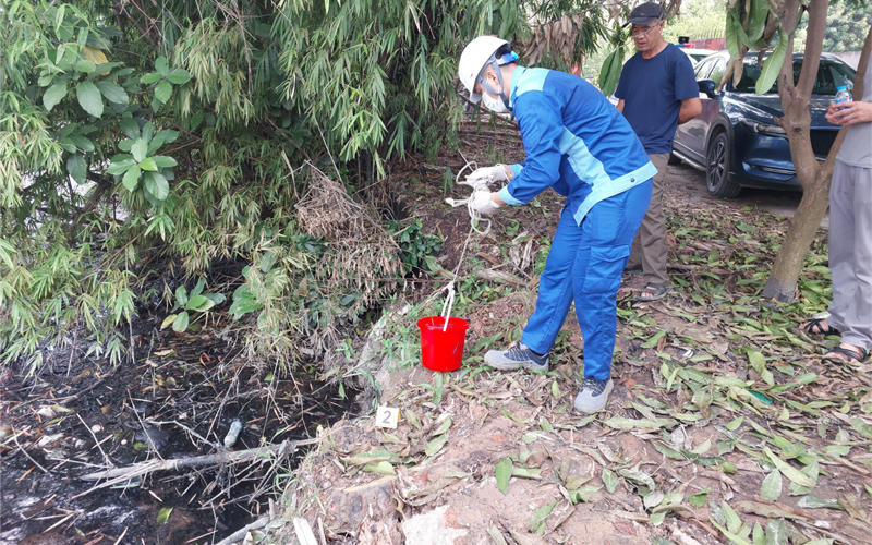 Lấy mẫu nước thải đánh giá mức độ ô nhiễm từ Công ty Prime sau phản ánh của người dân