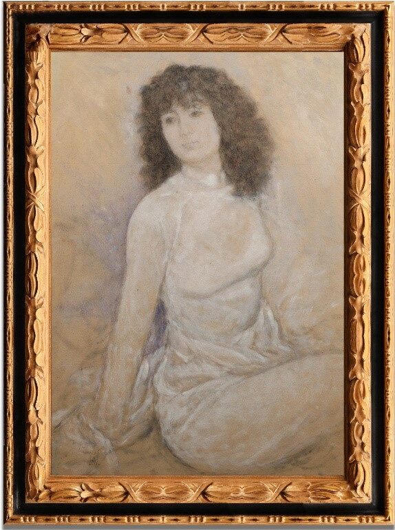 Trần Đông Lương (1925 – 1993). Chân dung thiếu nữ. Chì than và phấn màu trên giấy. Ký dưới trái. 55 x 80 cm |