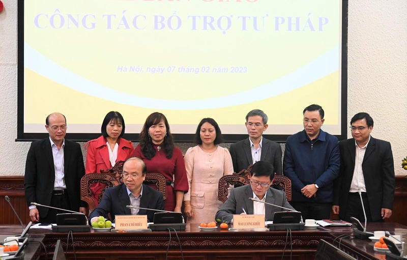 (PLVN) -Sáng ngày 07/02, Bộ Tư pháp tổ chức Lễ bàn giao công tác bổ trợ tư pháp giữa nguyên Thứ trưởng Bộ Tư pháp, Chủ tịch Viện Hàn lâm Khoa học xã hội Việt Nam Phan Chí Hiếu và Thứ trưởng Bộ Tư pháp Mai Lương Khôi.
