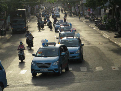 Sau khi diễu hành xe hoa trên một số tuyến đường chính ở TP Sóc Trăng, tiệc cưới của các cặp vợ chồng được diễn ra tại nhà hàng Hải Tượng, trong khu đô thị 5A TP Sóc Trăng.