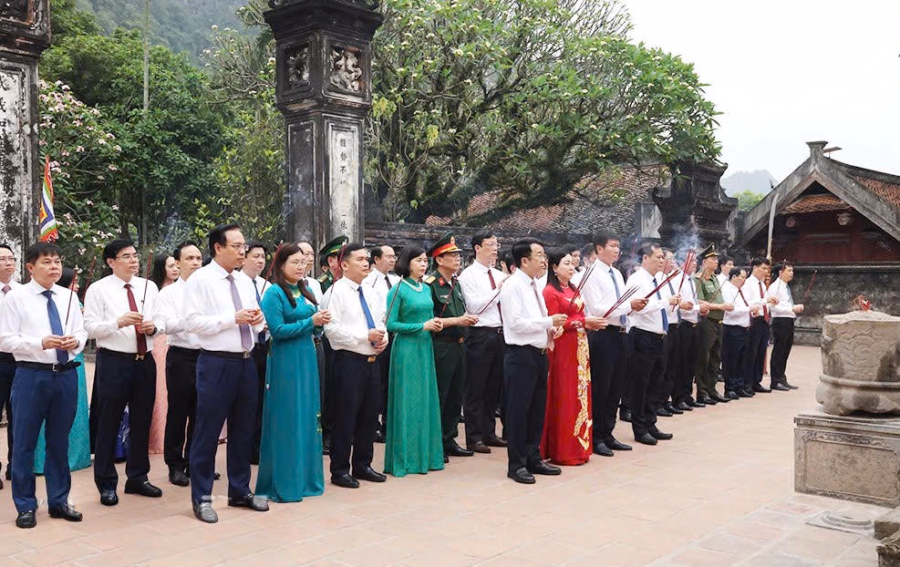 Tưởng nhớ, tri ân công lao to lớn của các bậc Tiên đế và tiền nhân trong sự nghiệp dựng nước, giữ nước, Đảng bộ, chính quyền, quân và Nhân dân tỉnh Ninh Bình nguyện tiếp tục kế thừa, phát huy truyền thống anh hùng của quê hương, đoàn kết, thống nhất, vượt qua mọi khó khăn, thách thức, phát huy nội lực, tranh thủ thời cơ, đổi mới, sáng tạo, quyết tâm hoàn thành thắng lợi các mục tiêu, nhiệm vụ mà Nghị quyết Đại hội Đảng bộ tỉnh lần thứ I, nhiệm kỳ 2025 - 2030, Nghị quyết Đại hội toàn quốc lần thứ XIV của Đảng đã đề ra, tạo nền tảng vững chắc sớm hiện thực hóa khát vọng xây dựng Ninh Bình trở thành thành phố trực thuộc Trung ương vào năm 2030.