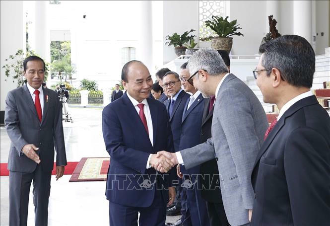 Trong tiếng nhạc chào mừng, Tổng thống Joko Widodo mời Chủ tịch nước Nguyễn Xuân Phúc bước lên bục danh dự. Quân nhạc cử Quốc thiều Việt Nam và Quốc thiều Indonesia, cùng lúc, nhiều loạt đại bác chào mừng vang lên, thể hiện sự coi trọng chuyến thăm cấp Nhà nước của Chủ tịch nước Nguyễn Xuân Phúc...