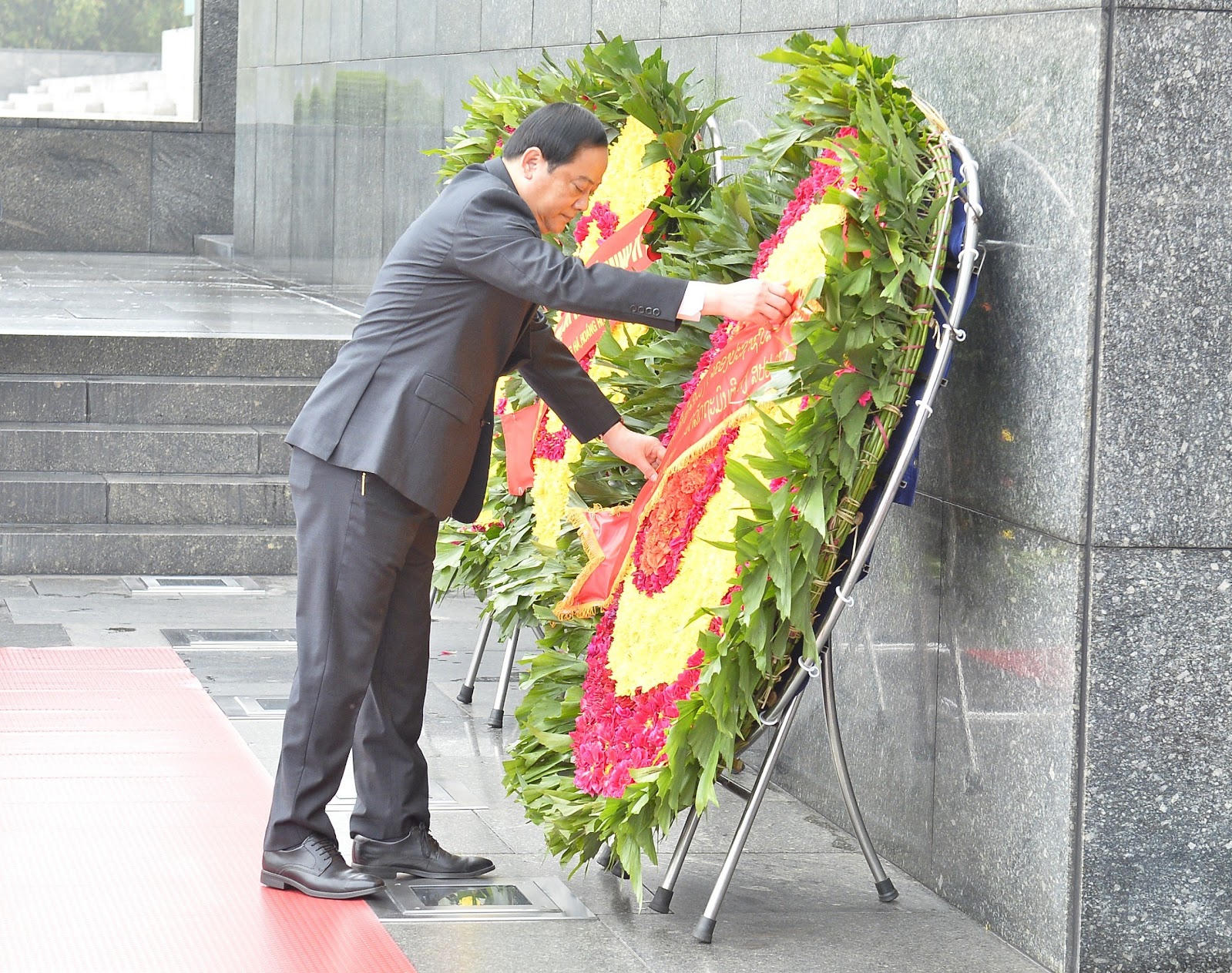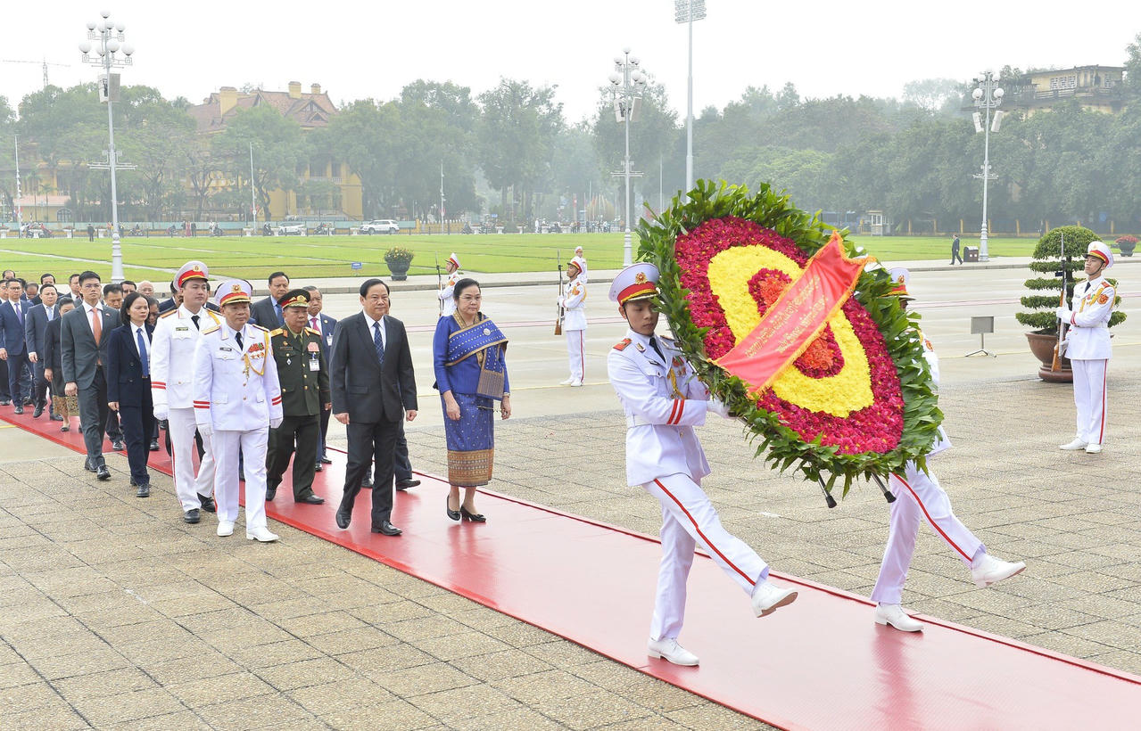 Trước lễ đón, ngay sau khi tới Thủ đô Hà Nội, Thủ tướng Lào và Phu nhân cùng đoàn đại biểu Chính phủ Lào đã tới đặt hoa và vào Lăng viếng Chủ tịch Hồ Chí Minh, đặt hoa tưởng niệm tại Đài tưởng niệm các anh hùng liệt sĩ.