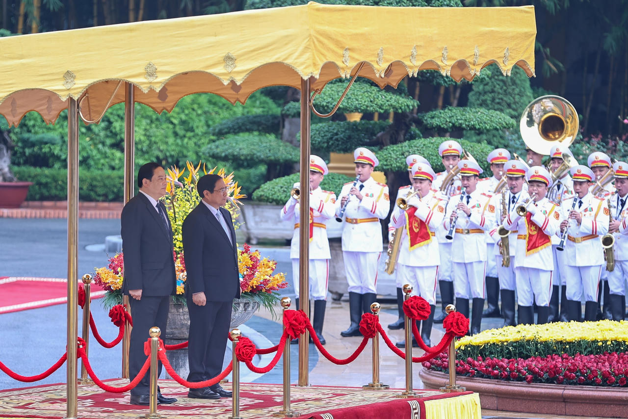 Thủ tướng Phạm Minh Chính chủ trì lễ đón Thủ tướng Lào Sonexay Siphandone theo nghi thức cao nhất dành cho người đứng đầu Chính phủ nước ngoài thăm chính thức Việt Nam - Ảnh: VGP/Nhật Bắc