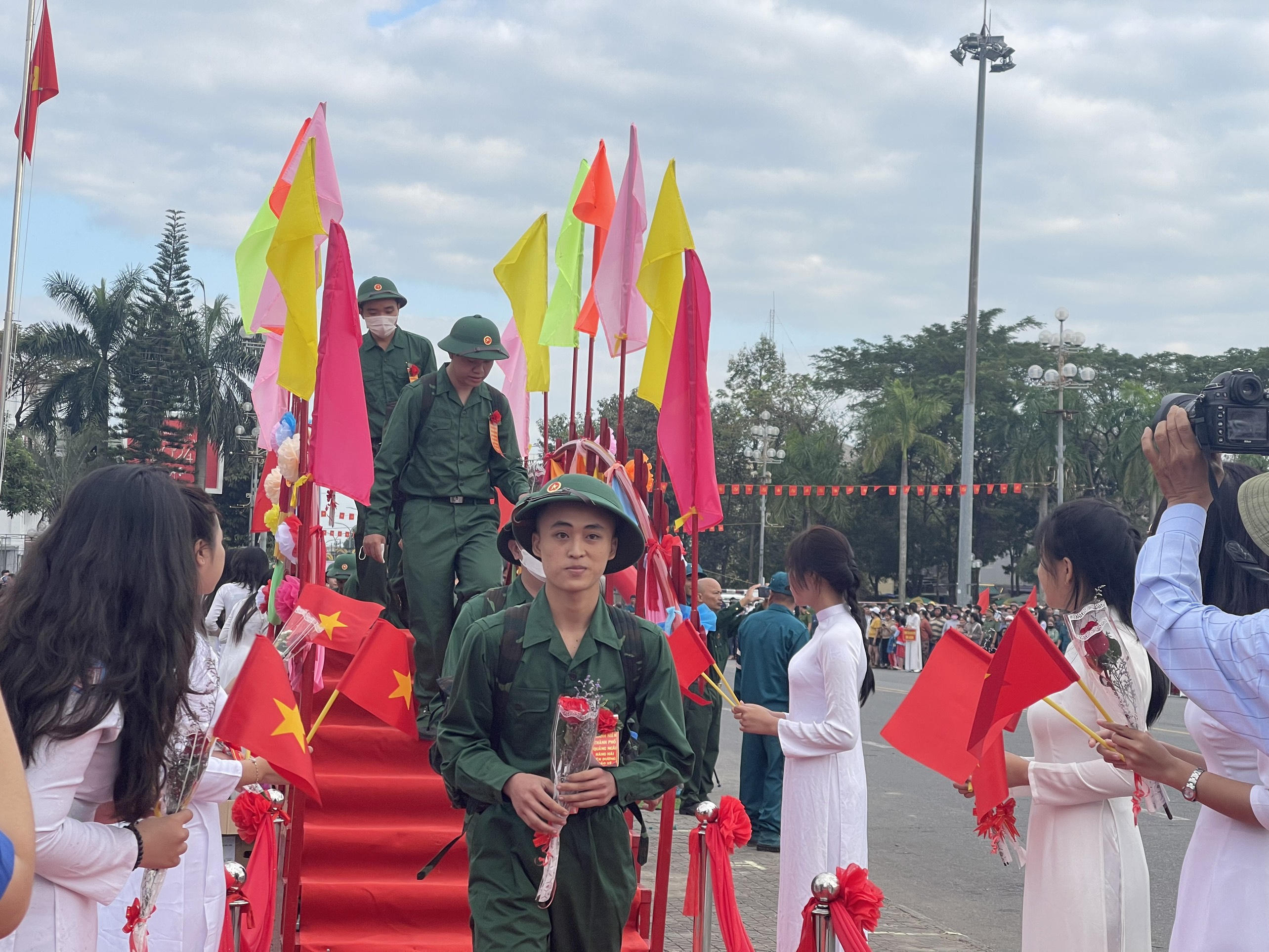 Tại Quảng Nam, sáng nay cũng có hàng ngàn thanh niên ưu tú hăng hái lên đường nhập ngũ.
