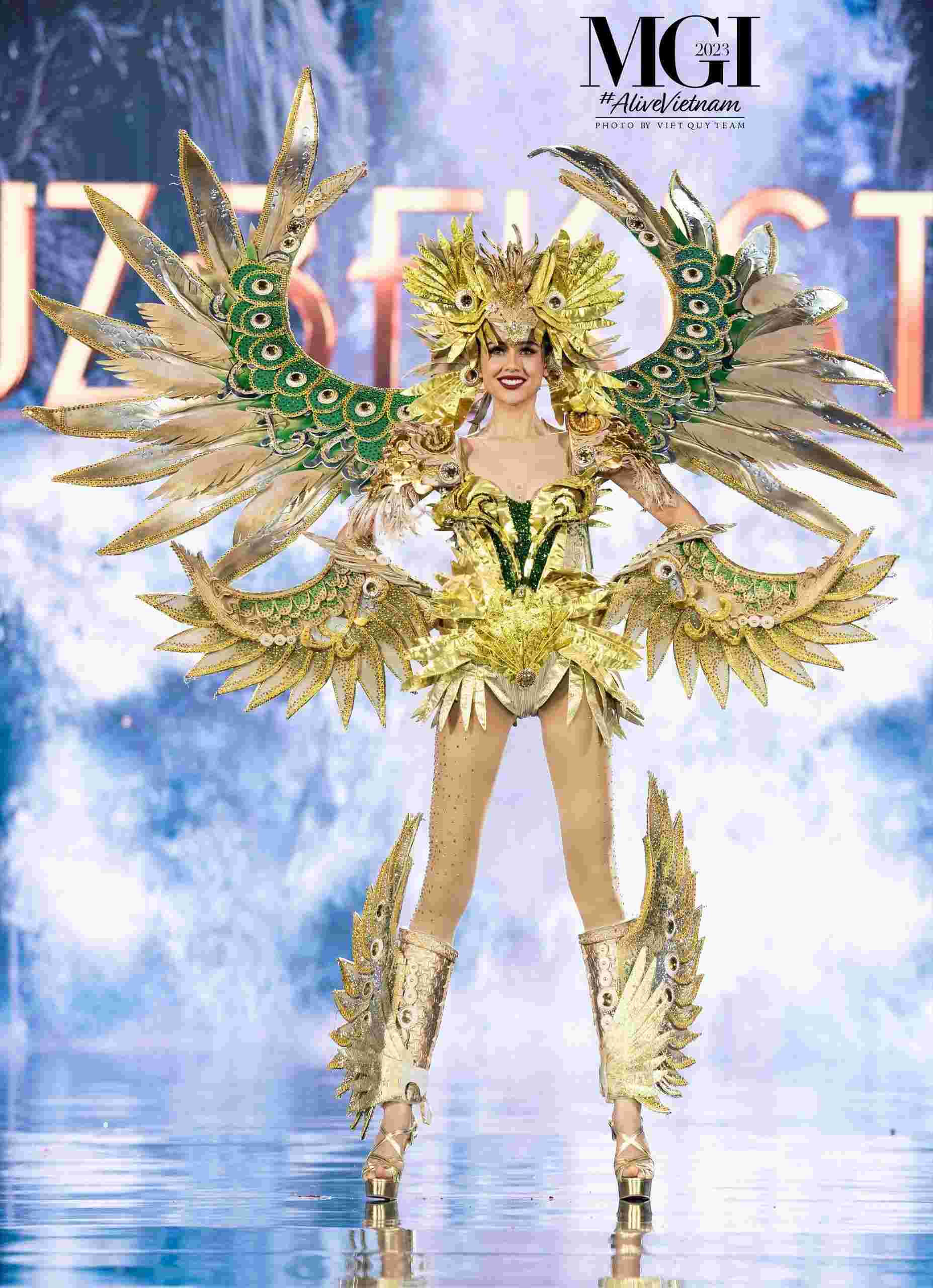 Theo tiết lộ của ban tổ chức, trang phục dân tộc lần này đã được “nâng cấp” với độ sự kỳ công khi có chiều cao lên đến 3,5 m và nặng 20 kg. Với biểu tượng cho sức mạnh, quyền uy, niềm tin và ước vọng về sự hưng khởi, thịnh vượng của người dân dành cho đất nước, bộ trang phục đầy tự hào của Việt Nam nhận được nhiều sự cổ vũ từ khán giả.