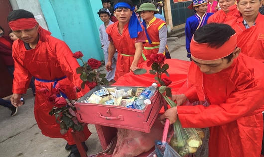 (PLO) - Lễ hội Ném Thượng năm nay không tổ chức chém lợn với cảnh tiết lợn đỏ tung tóe ở sân đình mà được đưa vào khu vực quây bạt kín để làm thịt cỗ Ngọc tế thánh.