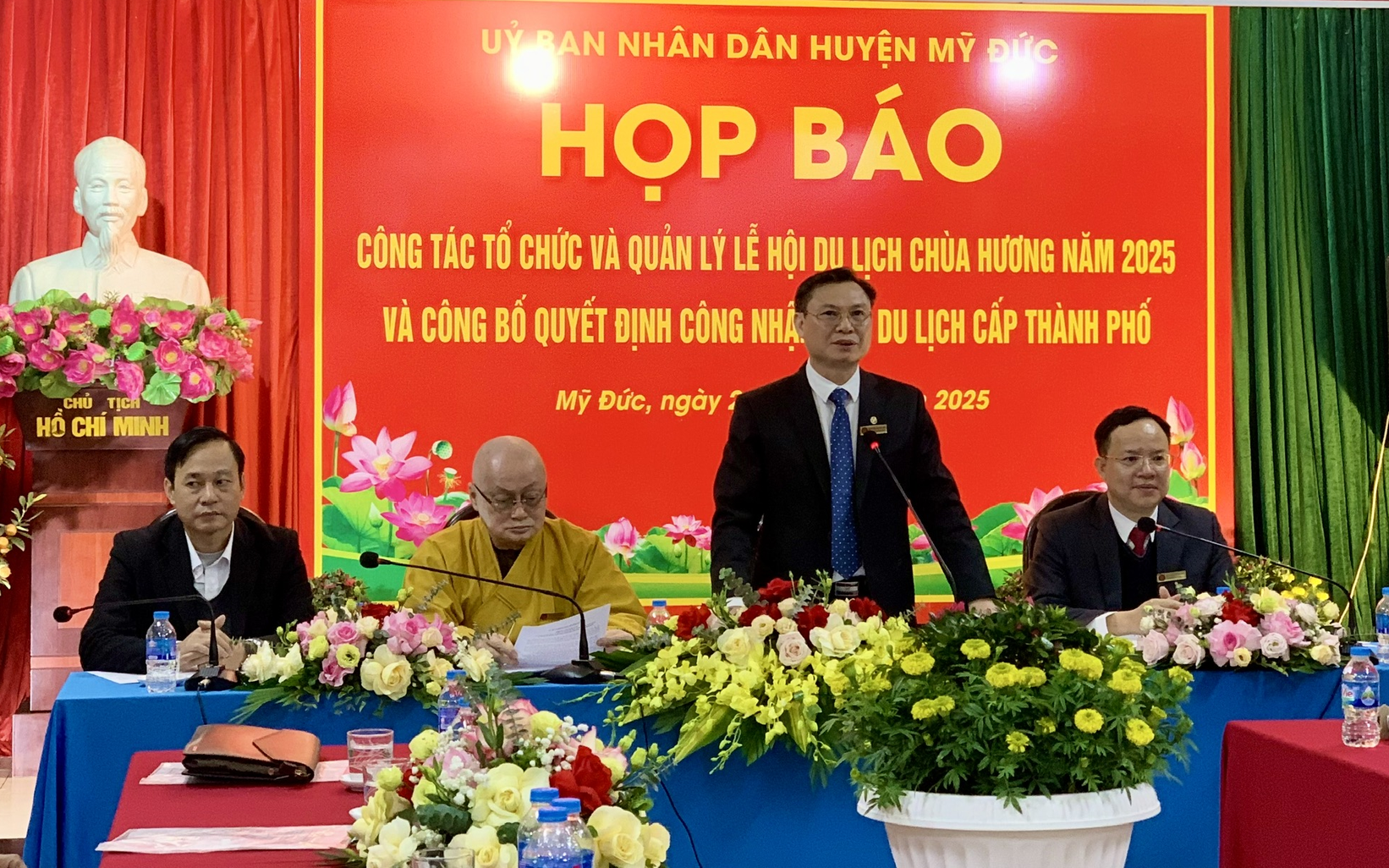 Thông tin tại Họp báo công tác tổ chức và quản lý lễ hội du lịch chùa Hương năm 2025 và Công bố quyết định công nhận khu du lịch cấp Thành phố diễn ra ngày 20/1, Phó Chủ tịch UBND huyện Mỹ Đức, Trưởng ban Tổ chức Lễ hội du lịch chùa Hương Đặng Văn Cảnh cho biết, ngày 24/9/2024, UBND thành phố Hà Nội đã ban hành quyết định công nhận khu du lịch cấp thành phố đối với Di tích quốc gia đặc biệt quần thể Hương Sơn (chùa Hương, nằm trên địa bàn xã Hương Sơn, huyện Mỹ Đức).