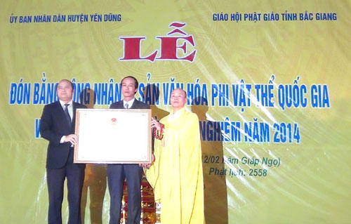 Lễ hội chùa Vĩnh Nghiêm nhận bằng Di sản văn hóa phi vật thể