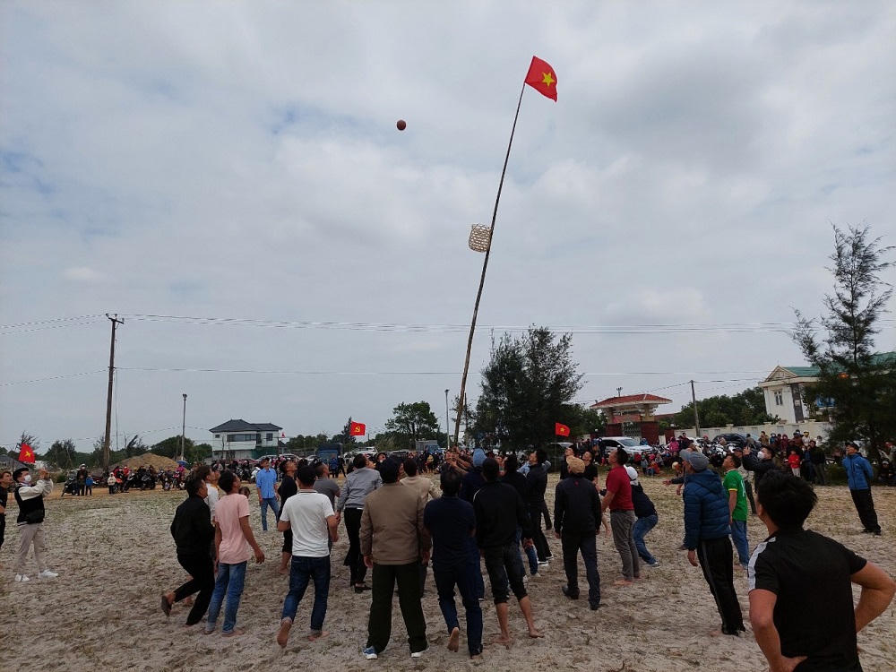Lễ hội cướp cù phường Quảng Long, thị xã Ba Đồn, thu hút hàng nghìn người đến xem và cổ vũ. |