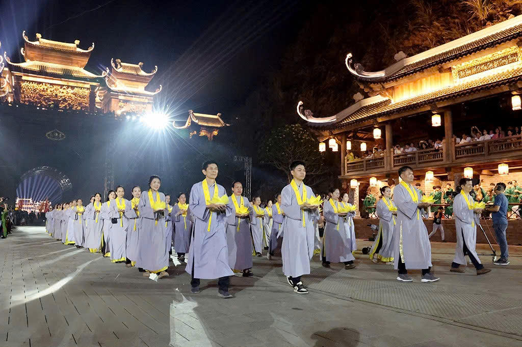 Tối 26/4, tại Khu văn hóa – du lịch Thung Ui, Ninh Bình đã diễn ra Chương trình nghệ thuật Lễ hội Đàn Kính Thiên năm 2026 với chủ đề “Huyền thiên cổ đàn”, quy tụ gần 2.500 diễn viên và lực lượng tham gia