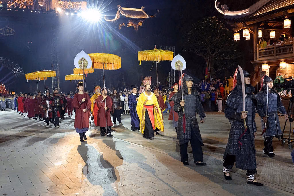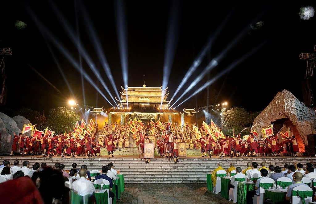 Hiệu ứng ánh sáng và hệ thống sân khấu đa lớp được sử dụng để tái dựng không gian tế lễ cổ trong hình thức nghệ thuật đương đại đã dẫn dắt khán giả trở về thời khắc khai sinh quốc gia Đại Cồ Việt, nơi con người đứng tại giao điểm của đất trời.