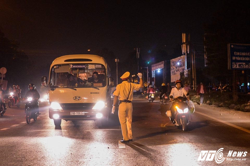 | Trước đó, vào đêm 9/3 (âm lịch) lực lượng CSGT tỉnh Phú Thọ đã túc trực xuyên đêm nhằm điều tiết tình hình giao thông. (Ảnh VTC) |