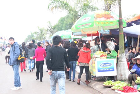 Không khác gì các nơi khác, với những món ăn “đặc trưng” như mỳ, bún, phở. Tuy nhiên, giá cả ở đây thì “sốc” hơn một số lễ hội khác. Một bát phở, mỳ ăn liền được bổ sung thêm vài miếng thịt mỏng được bán với giá 50 ngàn đồng. Trứng gà, trứng vịt luộc được bán với giá đồng hạng 10 ngàn đồng/1 quả.