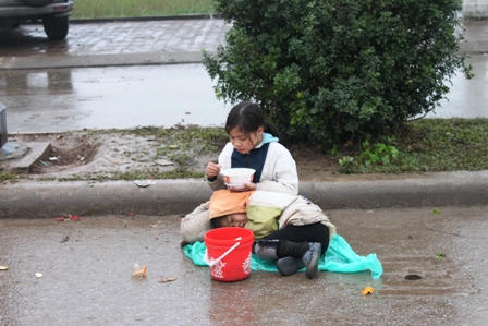 Cảnh tượng đau lòng khi những đứa trẻ đội rét đi ăn xin |