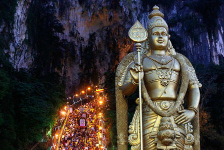 Lễ hội Thaipusam là một lễ hội lớn của người Hindu, được người dân nước này tổ chức vào tháng Giêng hoặc tháng 2 hàng năm. Ngày trăng tròn của tháng được xem như ngày lễ cảm tạ và hối lỗi, tưởng nhớ đến ngày nữ thần Hindu Pavarthi, người đã trao cho con trai của mình là Thần Muruga- thần chiến tranh, đức hạnh, tuổi trẻ và sức mạnh- một cây giáo vô song để tiêu diệt ác quỷ Soorapadam. Vì vậy, cây giáo này trở thành biểu tượng của buổi lễ.
