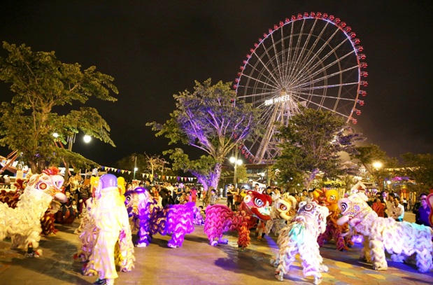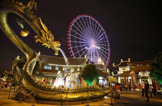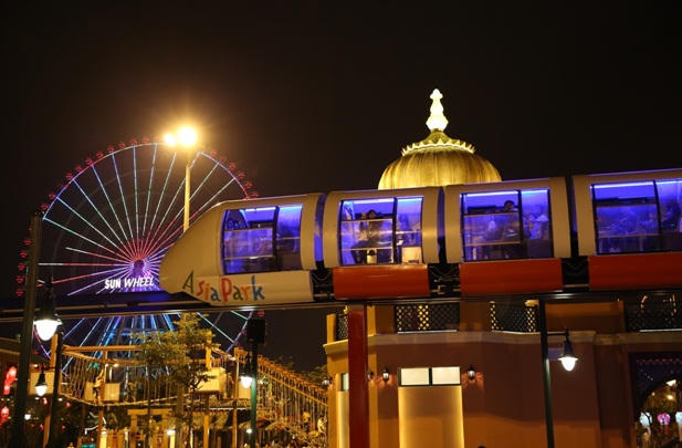 Không chỉ có lễ hội Hạt Ngọc Trời, đến với Asia Park đầu năm mới, du khách còn được dạo chơi trong không gian Châu Á lung linh kỳ ảo, rực rỡ sắc màu của hàng loạt tuyệt tác kiến trúc như Cổng Thành, Tháp Đồng hồ, Sun Wheel, Thuyền rồng, Tượng Phật…