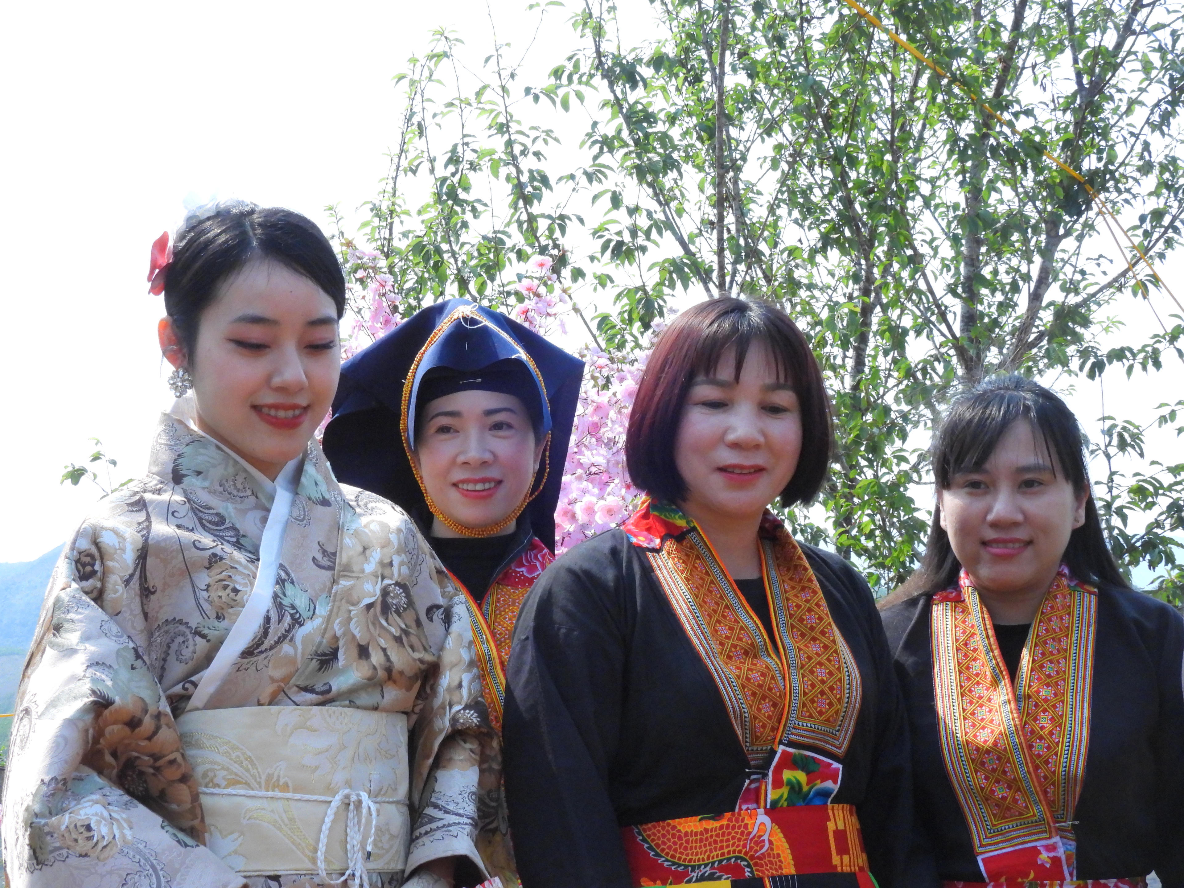 | Nhân dân và du khách tham gia trải nghiệm trang phục Kimono (Nhật Bản) và trang phục đồng bào dân tộc. |
