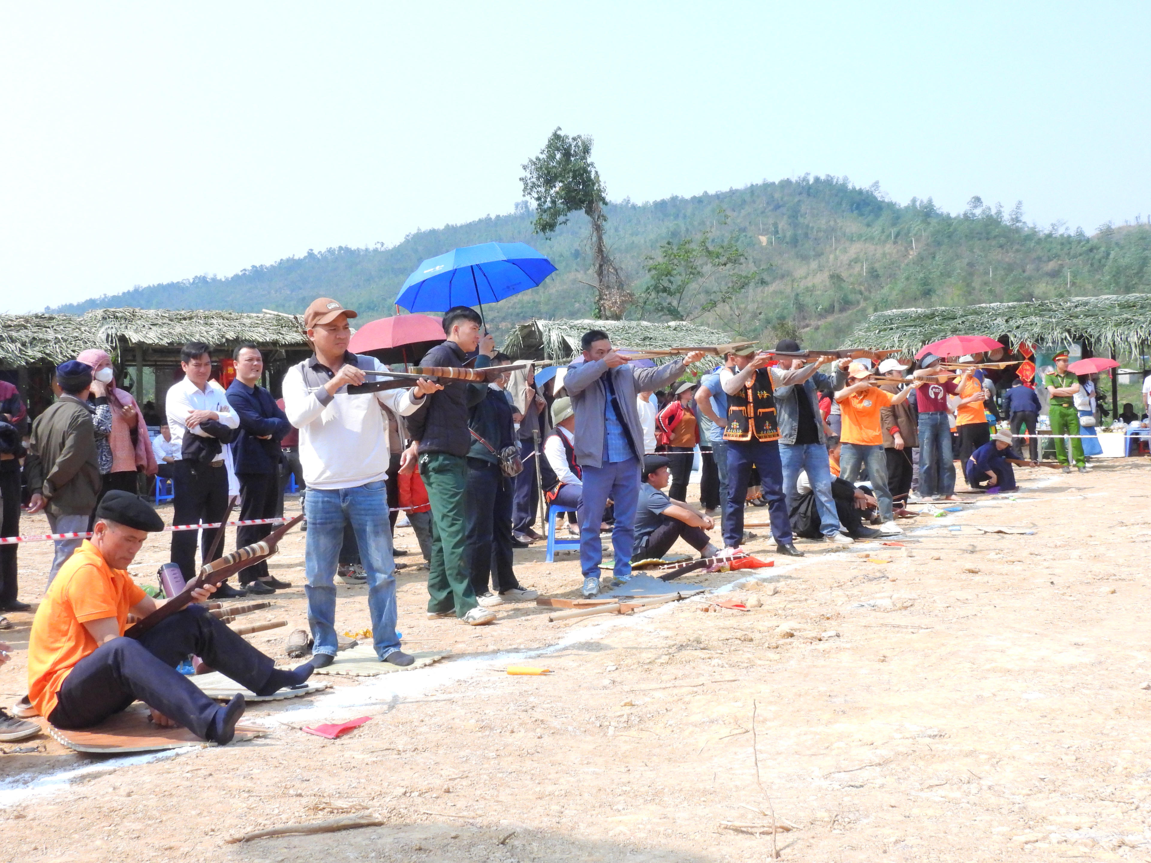 | Cuộc thi bắn nỏ của đồng bào dân tộc thiểu số giữa các xã vùng cao tại lễ hội. |