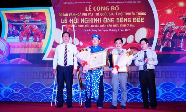 Lễ hội Nghinh Ông ở thị trấn Sông Đốc (Cà Mau) đã được Bộ Văn hóa, Thể thao và Du Lịch quyết định đưa vào Danh mục di sản văn hóa phi vật thể Quốc gia. Đây là một nỗ lực rất lớn của các cá nhân, đơn vị chuyên môn của tỉnh đã xác định đúng, đầy đủ giá trị của Lễ hội Nghinh Ông để lập hồ sơ trình Bộ Văn hóa, Thể thao và Du lịch công nhận.