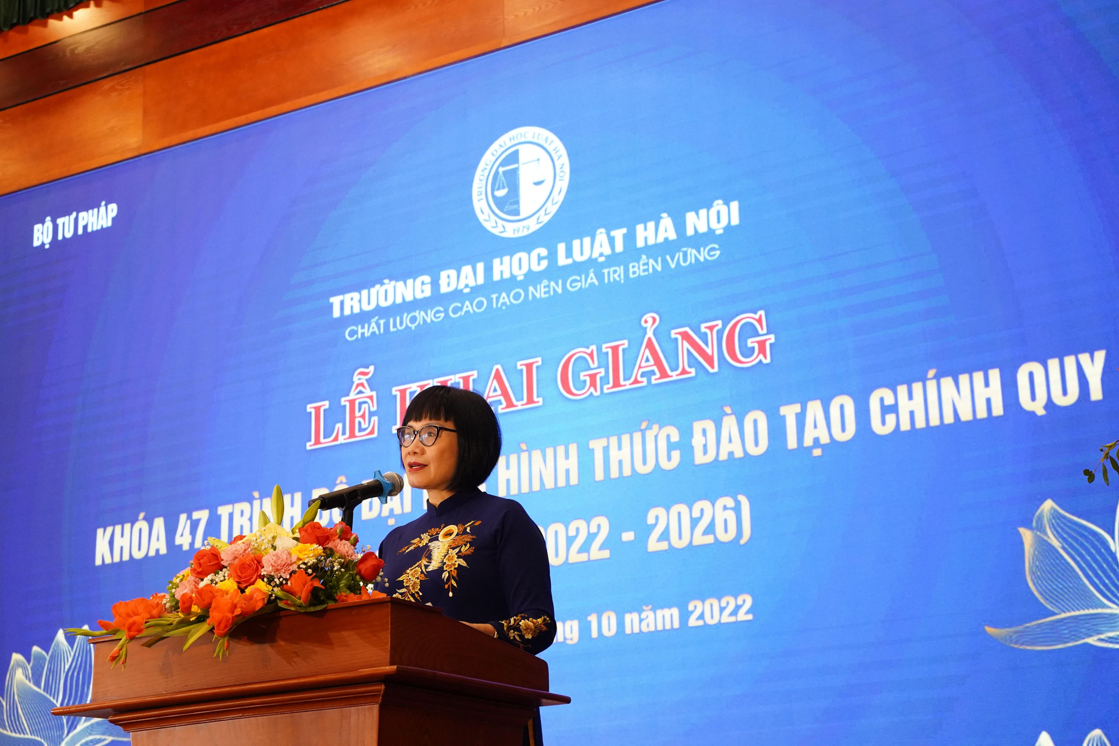 Chúc mừng các tân sinh viên K47 của Trường Đại học Luật Hà Nội, Thứ trưởng Đặng Hoàng Oanh nhấn mạnh kết quả đáng khích lệ này tiếp tục khẳng định uy tín và thương hiệu của Trường Đại học Luật Hà Nội trong đào tạo ngành luật, đồng thời cũng phản ánh nhu cầu, sự coi trọng, tin tưởng của xã hội, của các bậc phụ huynh và gửi gắm ước mơ của các tân sinh viên đối với nghề luật nói chung và Trường Đại học Luật Hà Nội nói riêng.
