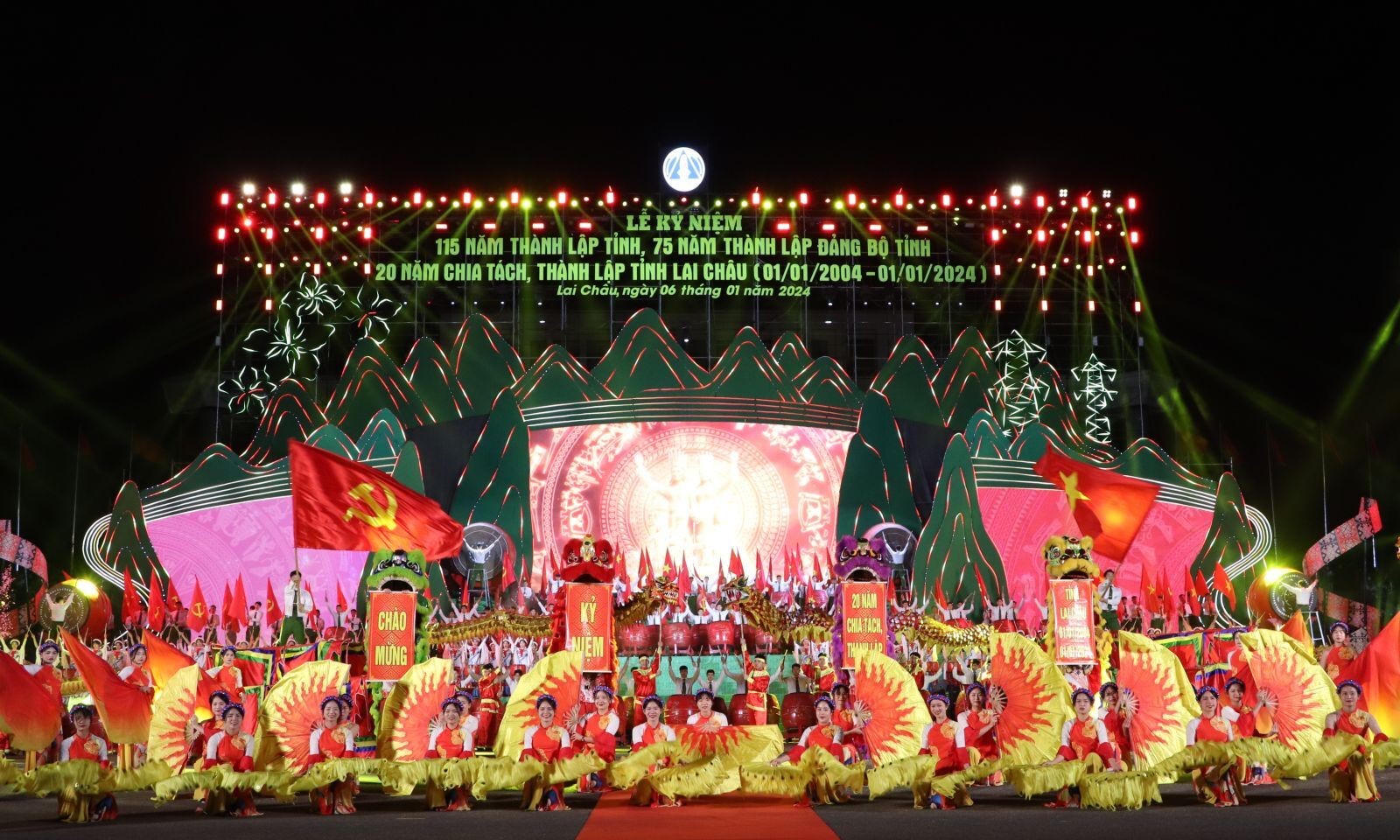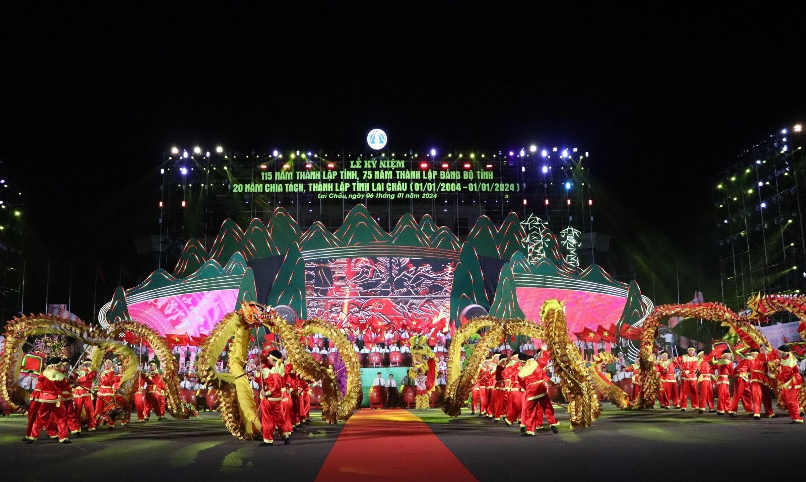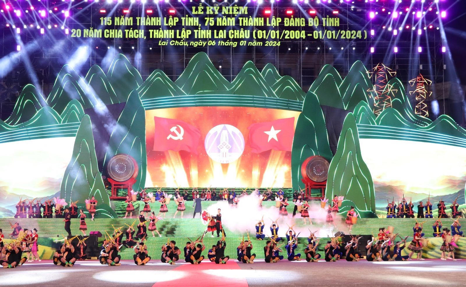 (PLVN) - Tối ngày 6/1/2024, tại Quảng trường nhân dân tỉnh Lai Châu đã diễn ra Lễ Kỷ niệm 115 năm thành lập tỉnh Lai Châu (28/6/1909 - 28/6/2024), 75 năm thành lập Đảng bộ tỉnh (10/10/1949 - 10/10/2024), 20 năm chia tách, thành lập tỉnh Lai Châu (01/01/2004 - 01/01/2024).
