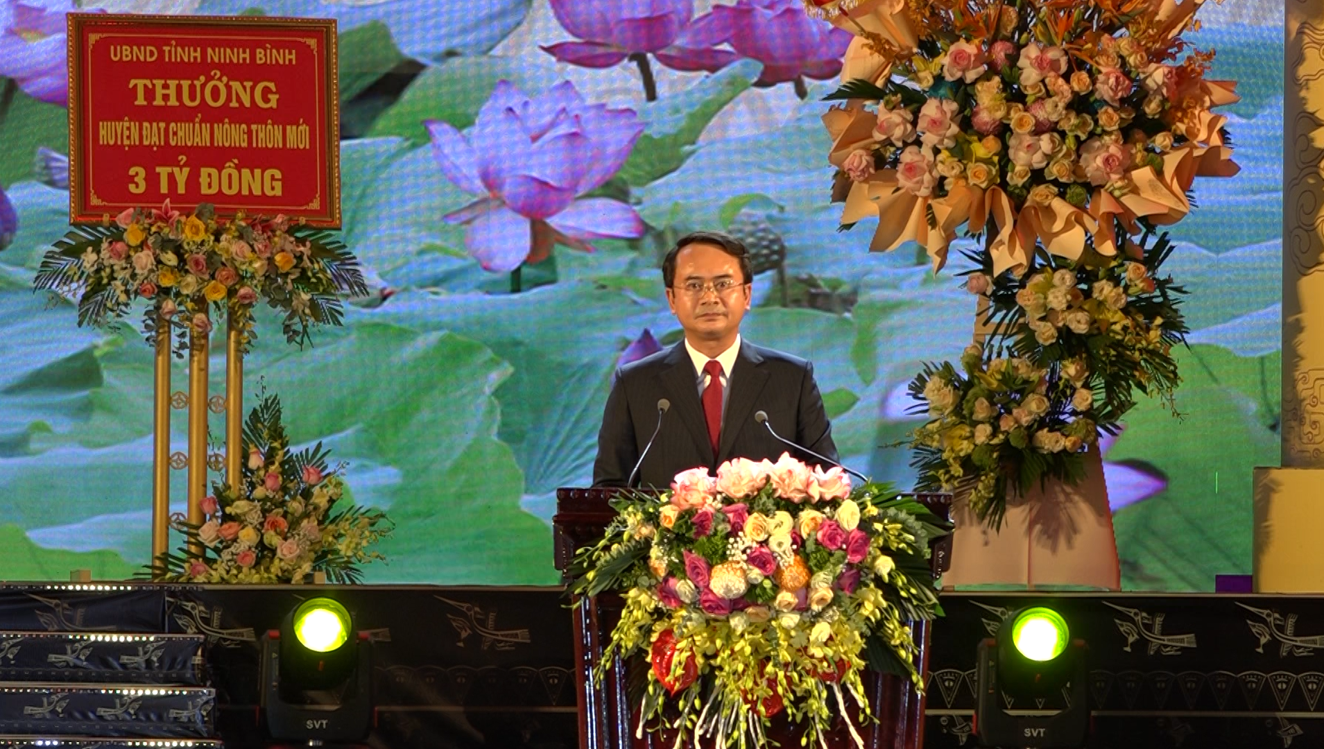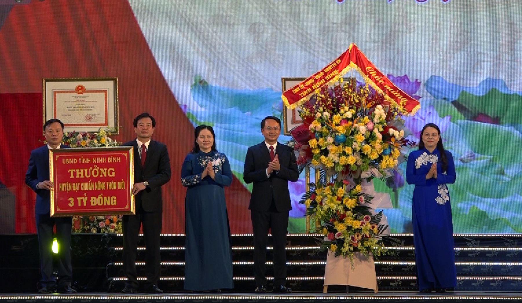 Bí thư Tỉnh ủy Ninh Bình trao hoa và thưởng cho huyện Nho Quan. |