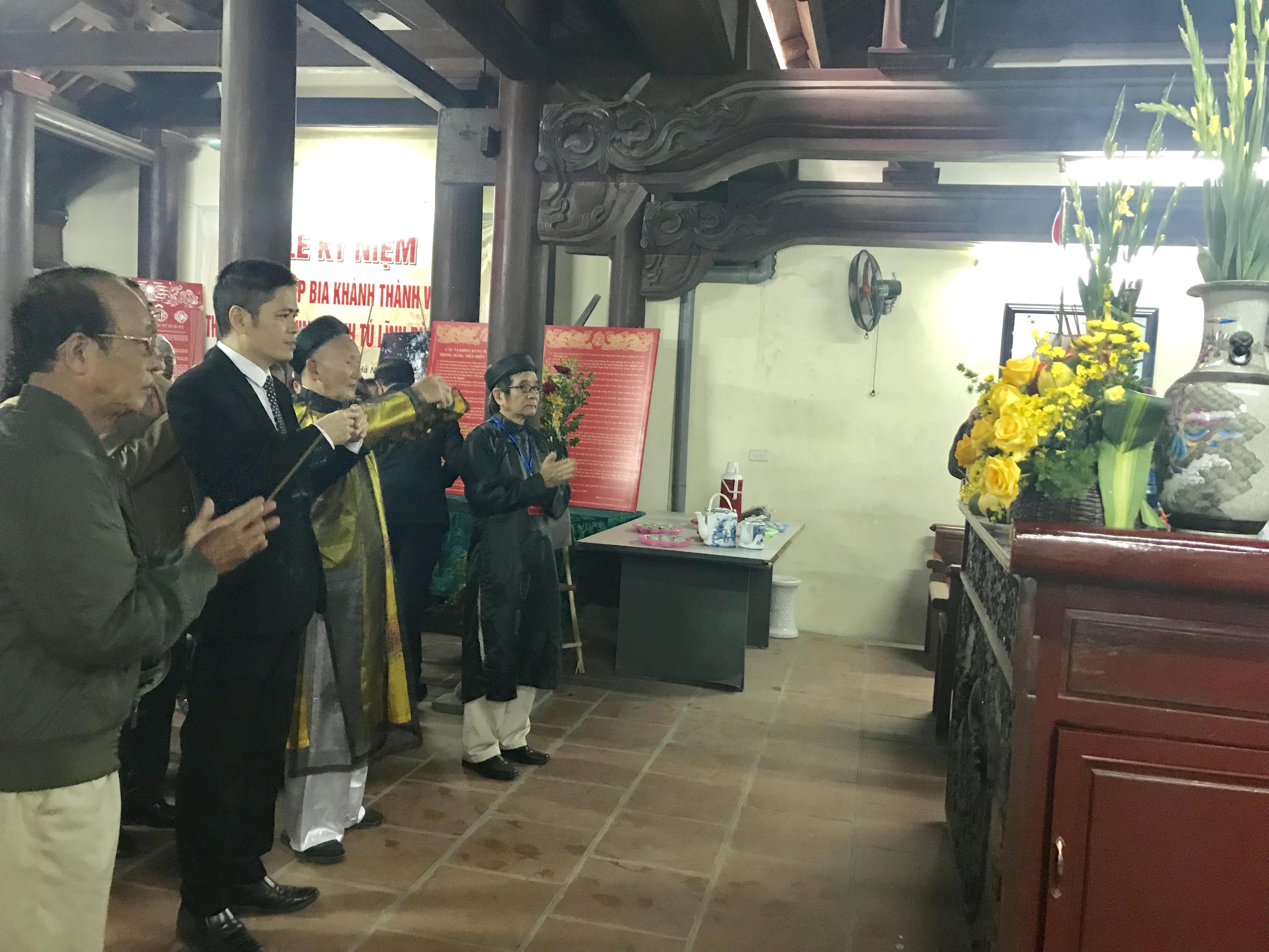 Ông Bùi Huy Ánh - hậu duệ đời thứ 18 chi Bính, dòng họ Bùi Huy Phất Lộc- Trưởng ban liên lạc dòng họ Bùi Huy Phất Lộc- Thăng Long- Hà Nội cùng các quan khách và hậu duệ dòng họ Bùi làm lễ dâng hương tưởng niệm các vị tiên hiền và Tú lĩnh Bùi Huy Tùng.