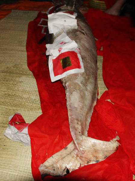 Lễ mai táng cá ông 80kg trôi dạt biển Cửa Hội