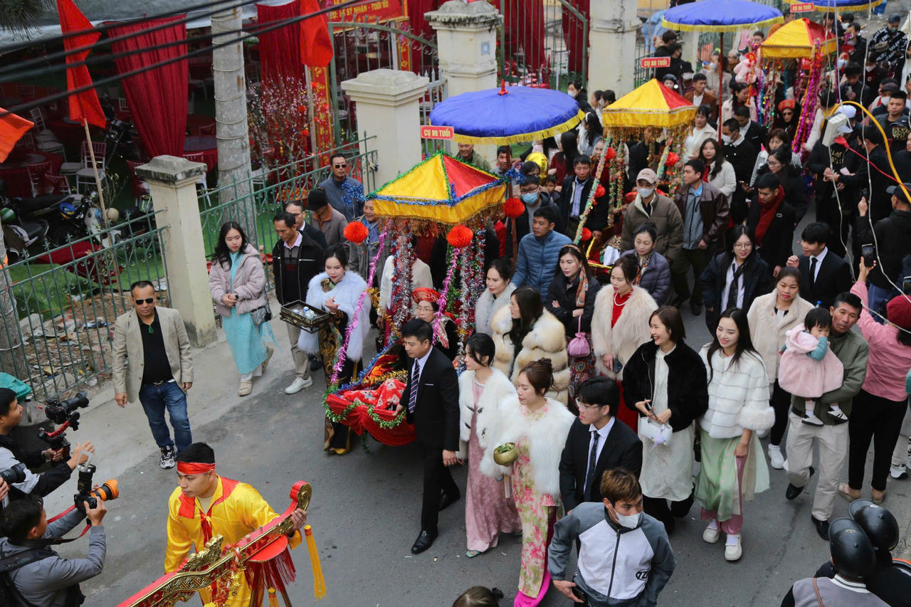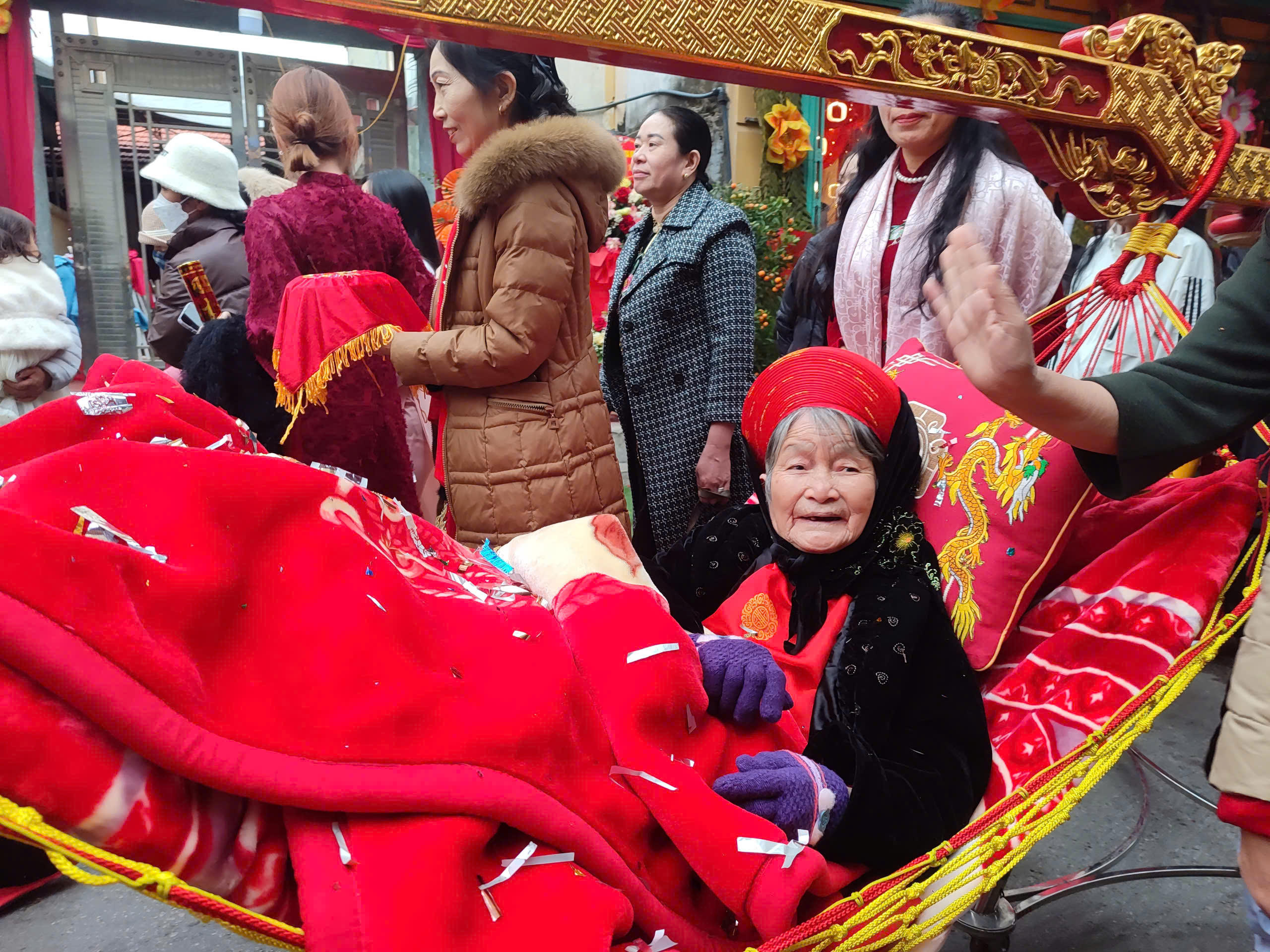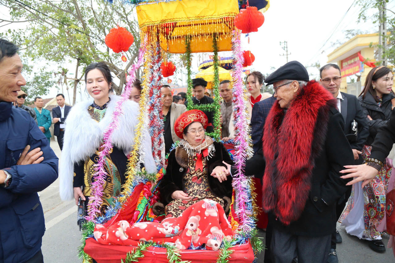 | Theo truyền thống, các cụ sẽ được ngồi trên võng đào hoặc kiệu rồng, do con cháu và người thân rước từ nhà ra Miếu Tiên Công để làm lễ tế tổ. |