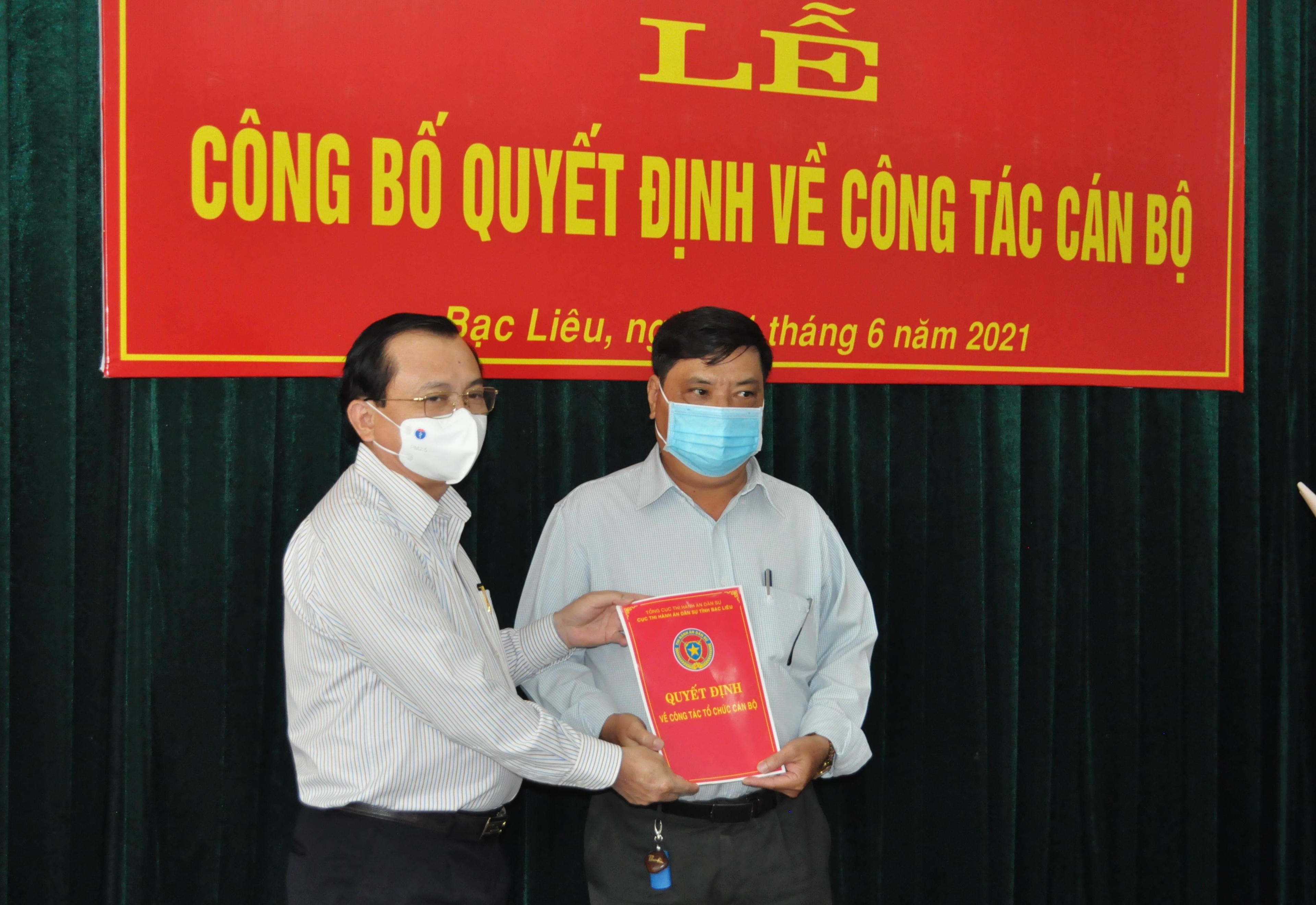 Chiều nay - 21/6, Cục Thi hành án dân sự tỉnh Bạc Liêu đã tổ chức Lễ công bố và trao Quyết định của Tổng Cục trưởng Tổng cục THADS về việc nghỉ hưu trước tuổi để hưởng chế độ bảo hiểm xã hội đối với Phó Cục trưởng Thi hành án dân sự tỉnh Lê Văn Thuần.