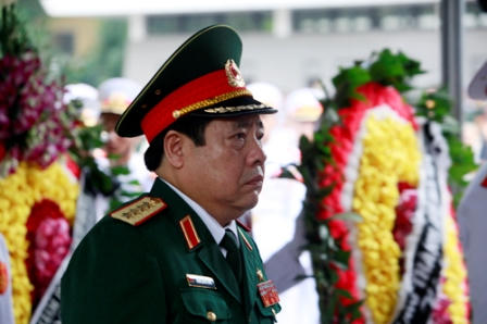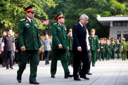 Đoàn đại biểu Quân ủy Trung ương do Tổng Bí thư Nguyễn Phú Trọng dẫn đầu đã vào viếng.