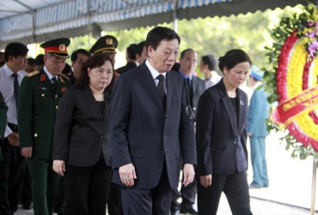 Tiếp theo là vòng hoa tưởng niệm của Thủ tướng Nguyễn Tấn Dũng và Phó thủ tướng Nguyễn Xuân Phúc. Đoàn đại biểu Chính phủ do Phó thủ tướng Hoàng Trung Hải vào viếng.