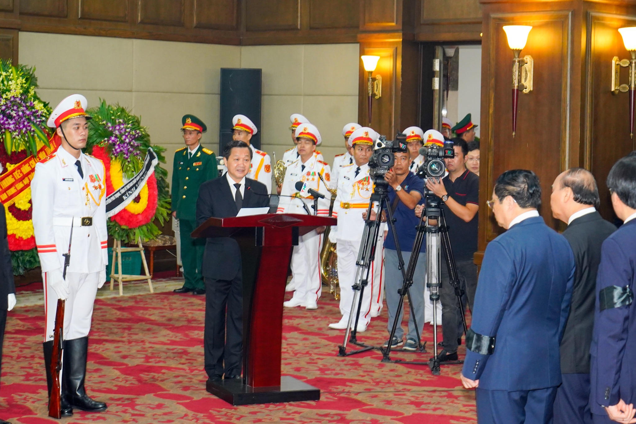 Phó Thủ tướng Lê Minh Khái xúc động: "Hôm nay, chúng tôi có mặt tại đây để bày tỏ lòng tiếc thương và tiễn đưa Đồng chí về nơi an nghỉ cuối cùng. Chúng tôi nguyện đoàn kết một lòng, ra sức phấn đấu, tiếp tục đi theo con đường cách mạng mà Đảng, Chủ tịch Hồ Chí Minh và các thế hệ cách mạng đi trước để xây dựng một nước Việt Nam "dân giàu, nước mạnh, dân chủ, công bằng, văn minh".