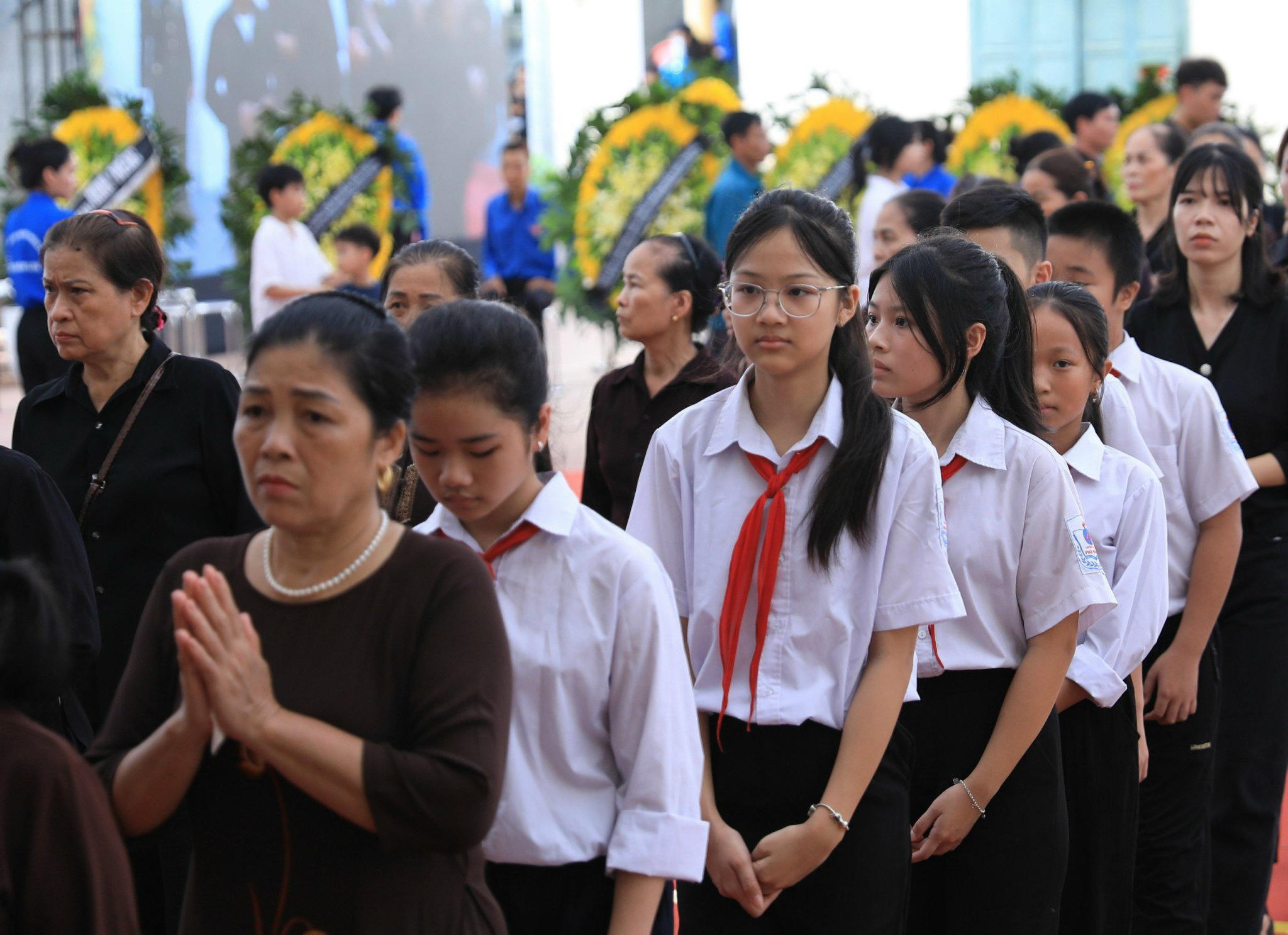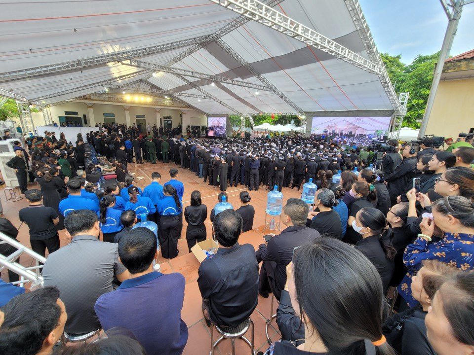 Ngay sau lời khai mạc của Ban Tổ chức Lễ tang, các đoàn thể đại diện cơ quan, tổ chức có mặt tại sân Nhà văn hóa thôn Lại Đà nghiêm trang dành một phút mặc niệm Tổng Bí thư Nguyễn Phú Trọng - Người con ưu tú của quê hương.