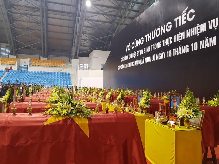 (PLVN) - Sáng nay (22/10), Lễ viếng và truy điệu 22 liệt sĩ hy sinh khi đang làm nhiệm vụ phòng chống bão lũ đã diễn ra trang trọng tại Nhà thi đấu đa năng tỉnh Quảng Trị.