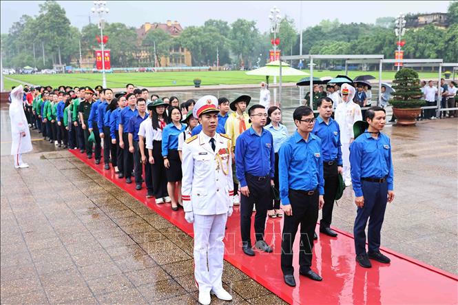 Đồng chí Bùi Quang Huy, Ủy viên dự khuyết BCH Trung ương Đảng, Bí thư thứ nhất BCH Trung ương Đoàn cùng các đại biểu vào Lăng viếng Chủ tịch Hồ Chí Minh.