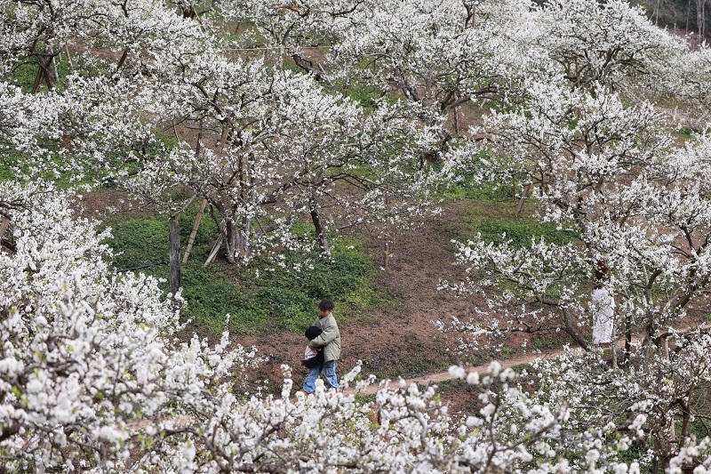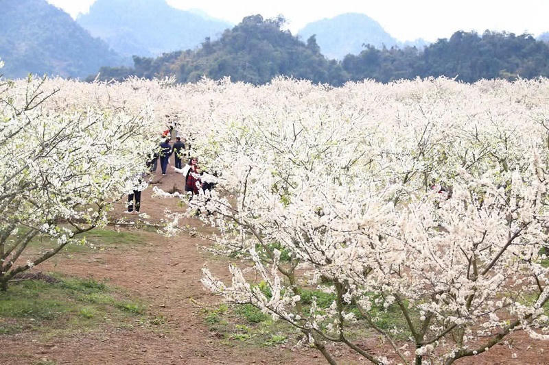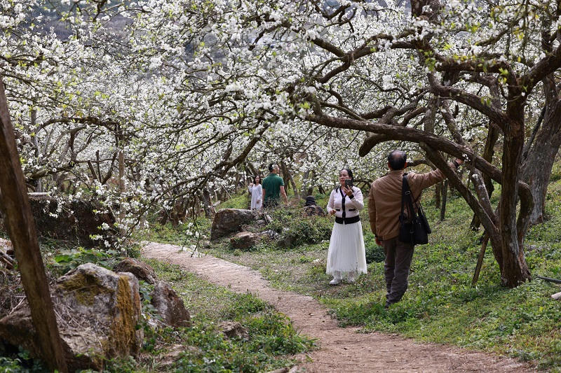 Du khách du xuân đến Mộc Châu dịp này, ngoài được thưởng ngoạn phong cảnh núi non hùng vĩ, còn được đắm mình bên những rừng mận nở trắng xóa đẹp đến say đắm lòng người. Những cánh hoa mỏng manh, dịu dàng đón ánh nắng mai như một bức tranh mùa xuân tuyệt đẹp. Du khách thỏa sức chiêm ngưỡng, chụp ảnh, lưu lại những khoảnh khắc đẹp cùng người thân, gia đình và bạn bè.