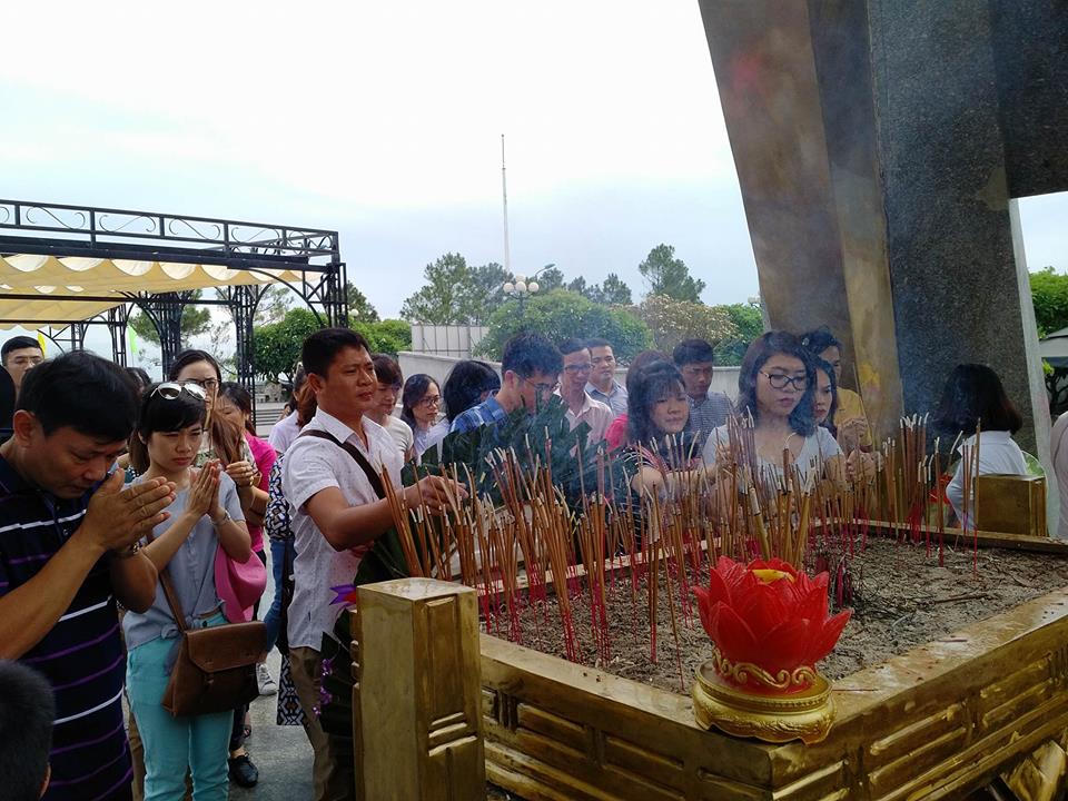 Sau khi dâng hương tại khu tưởng niệm trung tâm của nghĩa trang này, chúng tôi tỏa đi dâng lên tận từng một phần những nén hương thơm. Giữa bạt ngàn cây, bạt ngàn mộ, bạt ngàn hương khói tỏa mờ, Tổng Biên tập Đào Văn Hội đứng lặng người hồi lâu, trước một phần mộ lớn nằm ở phía Đông nghĩa trang này.