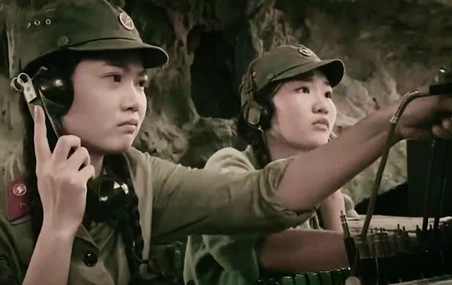 | Hình ảnh tái hiện lại cuộc chiến đấu của nữ chiến sĩ thông tin liên lạc ở Lèn Hà trong chương trình nghệ thuật “Alo, đây là A69”. |